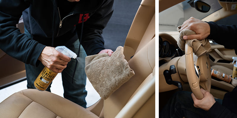 Шкіра є дуже вибагливим матеріалом, який вимагає особливої уваги. Згодом матеріал може початися тріскатися, а на його поверхні можуть накопичуватися різні забруднення. Щоб цього уникнути, слід використовувати спеціальні засоби для догляду за шкірою. Для очищення матеріалу слід застосовувати очищувач шкіри, який видаляється плями та відкриває пори шкіри. Після цього можна використовувати спеціальний спрей для догляду за матеріалом. Для того щоб унеможливити негативний вплив негативних температур, необхідно регулярно наносити на шкіру кондиціонер. Особливо рекомендується робити це у літній період.