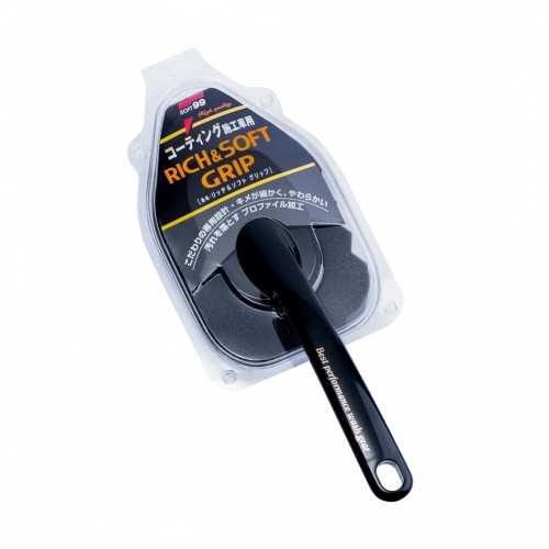 М'яка поліуретанова губка SOFT99 Rich & Soft Grip використовується для миття кузова. Має щільну сітчасту структуру, яка добре утримує вологу і вбирає бруд, не даючи дрібним частинкам дряпати лакофарбове покриття. Ергономічна ручка підвищує зручність миття даху автомобіля, а трикутна форма носика дозволяє чистити важкодоступні місця. Упаковку губки Rich & Soft Grip можна використовувати як футляр для зберігання.