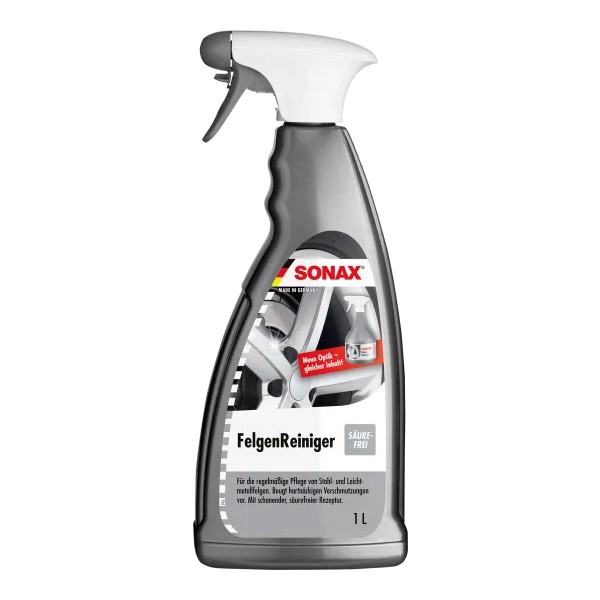 Очищувач дисків Sonax Felgen Reiniger швидко та легко видаляє звичайний бруд, такий як гальмівний пил та дорожній бруд з усіх сталевих та легкоспалвних дисків. Його регулярне використання запобігає стійким забрудненням. Безкислотна формула сумісна з усіма пластиковими, лакофарбовими та металевими деталями.